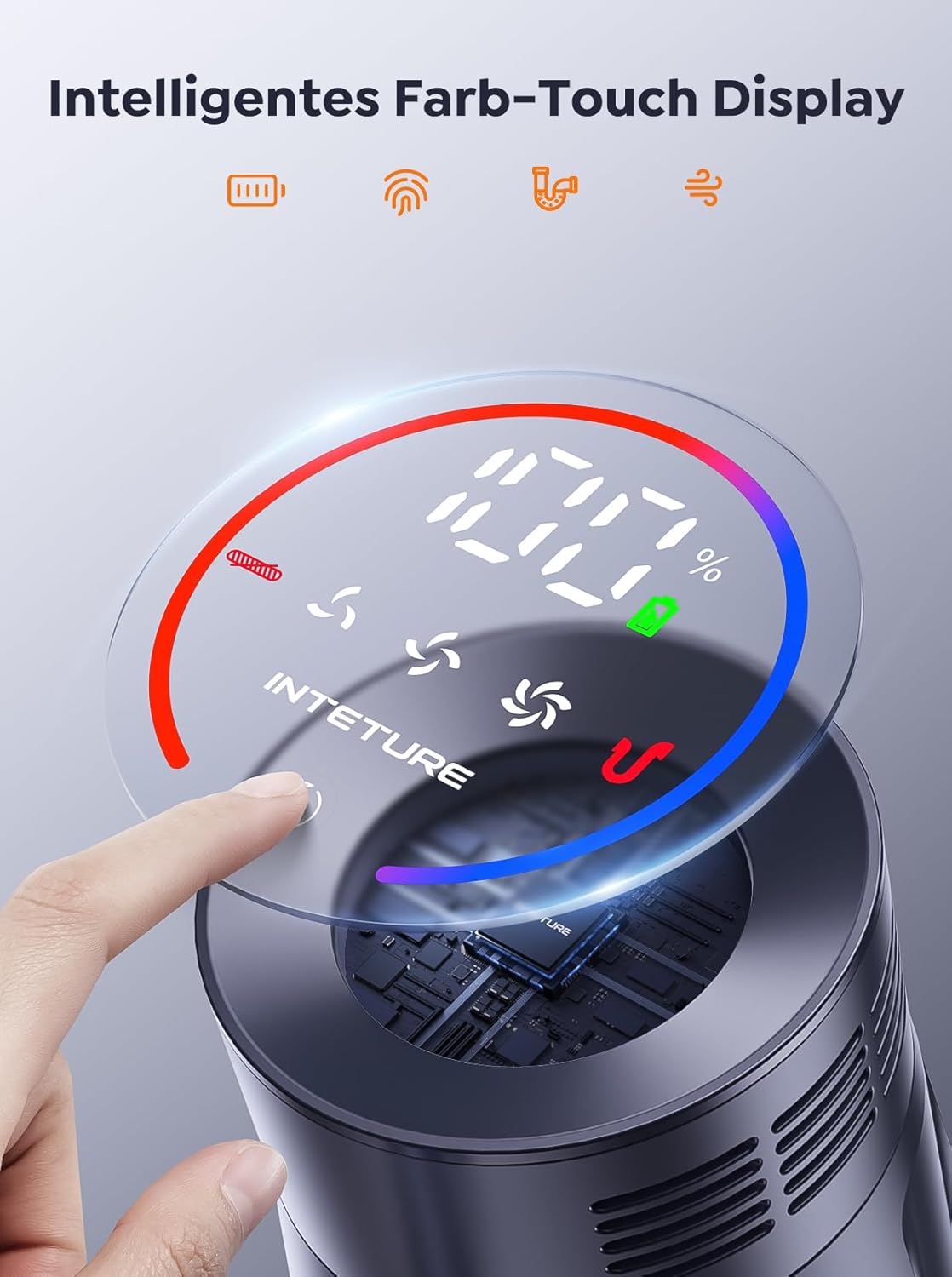 INTETURE Akku-Staubsauger, 45 KPa/550 W, 60 Min Laufzeit, kabellos, Anti-Verhedderung, Touchscreen, Wandstation, Tierhaare & Hartböden